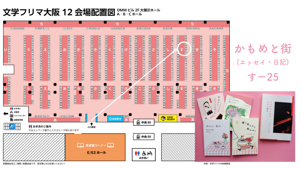 かもめと街のブース位置は、すー25 です。入口から右奥です。